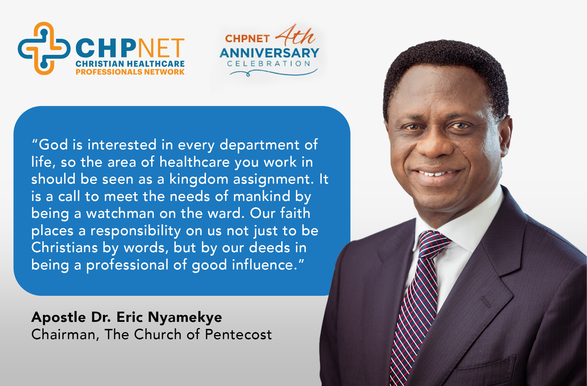 The Christian Healthcare Professionals Network (CHPNet) unites Christian healthcare professionals, equipping them with biblical principles, resources, and opportunities to excel in their careers and transform lives through Christ’s love. Established in 2021 amidst a global pandemic, CHPNet emerged as a beacon of hope for a world searching for answers. This network stands as a testament to the power of faith in action, fostering a community of professionals dedicated to demonstrating God’s love to humanity. Together, we strive to provide innovative solutions, inspire change, and make a lasting impact across the nations.